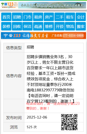 招聘乡镇销售业务3名,30岁以上,男女不限主营日化百货要求一年以上超市送货经验,基本工资+饭补+提成绩效各项奖金,综合收入上不封顶地址童泰东行200米南电18832997779微信勿加 【电话咨询时,请一定说明在宁晋123看到的,谢谢!】 |