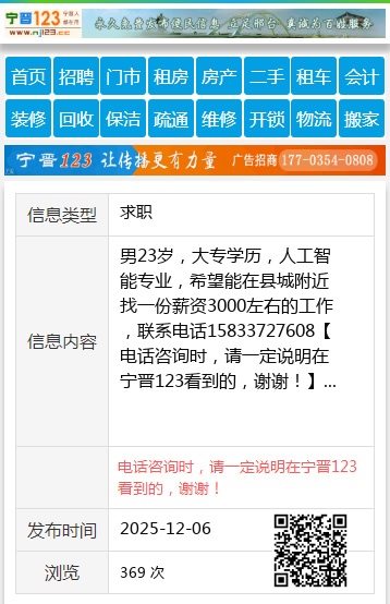 免责声明:本栏目信息由网友自行发布,宁晋123不承担任何责任!提高警惕,谨防诈骗!做推广、做信息置顶!请加宁晋123客服微信:ningjin009