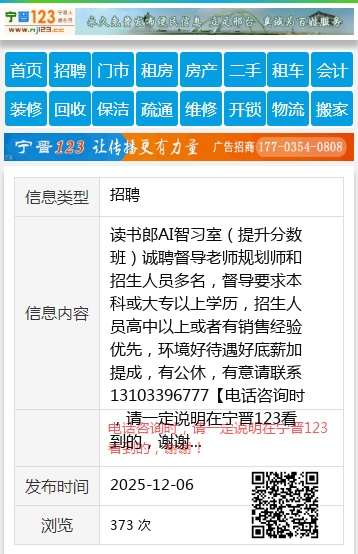 读书郎AI智习室(提升分数班)诚聘督导老师规划师和招生人员多名,督导要求本科或大专以上学历,招生人员高中以上或者有销售经验优先,环境好待遇好底薪加提成,有公休,有意请联系13103396777 【电话咨询时,请一定说明在宁晋123看到的,谢谢!】 |
