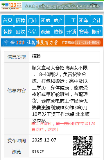 顺义盒马大仓招聘男女不限,18-40周岁,负责货物分拣、打包和搬运;高中及以上学历;身体健康,能接受夜班或早班轮班制,有配理货、仓库或电商工作经验优先薪资福利7000-10000