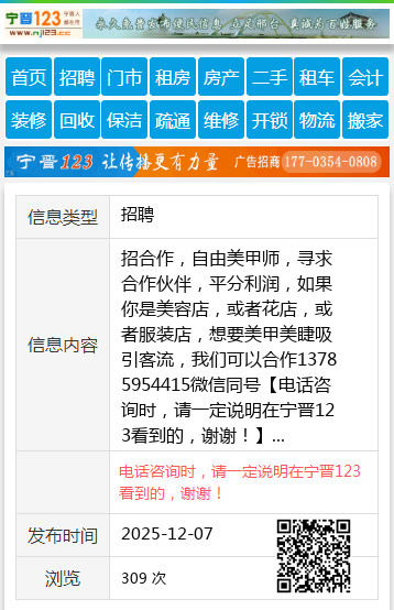 招合作,自由美甲师,寻求合作伙伴,平分利润,如果你是美容店,或者花店,或者服装店,想要美甲美睫吸引客流,我们可以合作13785954415微信同号 【电话咨询时,请一定说明在宁晋123看到的,谢谢!】 |
