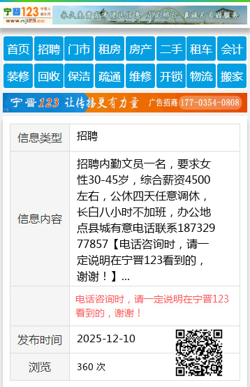 | 防骗提醒: | 宁晋123(www.nj123.cc)提醒您:手工活、网络兼职、刷单,都是骗子!凡以各种名义收取费用的都是骗子!找工作是往兜里挣钱,让你往外掏钱的都是骗子!异地招聘请提高警惕,谨防诈骗! |