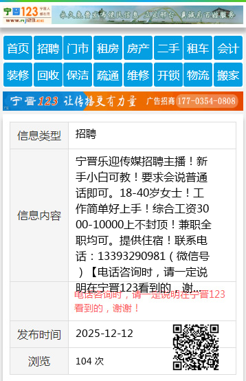 | 防骗提醒: | 宁晋123(www.nj123.cc)提醒您:手工活、网络兼职、刷单,都是骗子!凡以各种名义收取费用的都是骗子!找工作是往兜里挣钱,让你往外掏钱的都是骗子!异地招聘请提高警惕,谨防诈骗! |
