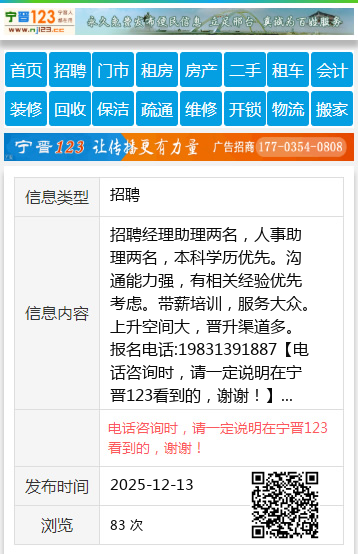| 防骗提醒: | 宁晋123(www.nj123.cc)提醒您:手工活、网络兼职、刷单,都是骗子!凡以各种名义收取费用的都是骗子!找工作是往兜里挣钱,让你往外掏钱的都是骗子!异地招聘请提高警惕,谨防诈骗! |
