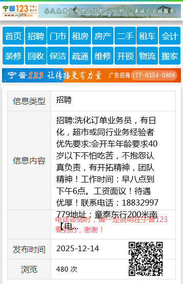 招聘:洗化订单业务员,有日化,超市或同行业务经验者优先要求:会开车年龄要求40岁以下不怕吃苦,不抱怨认真负责,有开拓精神,团队精神!工作时间:早八点到下午6点。工资面议!待遇优厚!联系电话:18832997779地址:童泰东行200米南 【电话咨询时,请一定说明在宁晋123看到的,谢谢!】 |