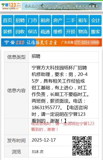 | 防骗提醒: | 宁晋123(www.nj123.cc)提醒您:手工活、网络兼职、刷单,都是骗子!凡以各种名义收取费用的都是骗子!找工作是往兜里挣钱,让你往外掏钱的都是骗子!异地招聘请提高警惕,谨防诈骗! |