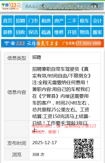 招聘兼职自带车驾驶员《真实有效/时间自由/不限男女》注:全程无需缴纳任何费用!兼职内容:用自己的车帮我们在《宁晋县》内接送需要用车的客户,时间2小时左右,总共里程25公里左右。工资结算:工资150完活马上结算-日结!工作要求:驾龄3年以上,车龄8年以内,限邢台市车牌私家车:轿车,越野车,商务车均可。注:冀E冀A车牌能做的加微信:DD522039或致电:15716993650 【电话咨询时,请一定说明在宁晋123看到的,谢谢!】 |