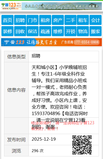 天和城小区】小学晚辅班招生!专注1-6年级全科作业辅导。我们采用精品小班或一对一模式,老师耐心负责,帮孩子高效完成作业,养成好习惯。小区内上课,安全方便。欢迎咨询!电话:15933704896 【电话咨询时,请一定说明在宁晋123看到的,谢谢!】 |