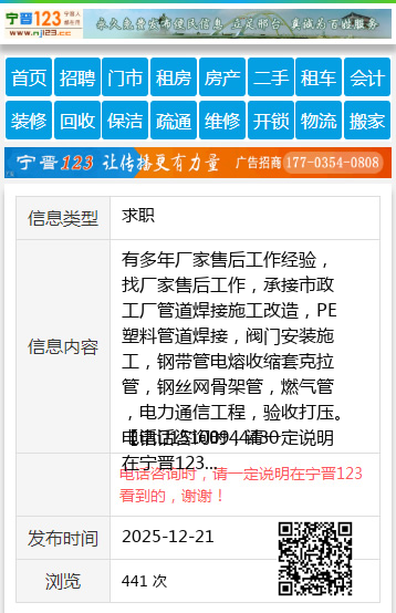 有多年厂家售后工作经验,找厂家售后工作,承接市政工厂管道焊接施工改造,PE塑料管道焊接,阀门安装施工,钢带管电熔收缩套克拉管,钢丝网骨架管,燃气管,电力通信工程,验收打压。电话15100944430