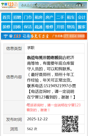 临近年关,郑州武汉合肥济南等地,有需要年底仓库留守人员的,可以和我联系。(最好是郑州,郑州十年工作经验,年关可正常出货。)