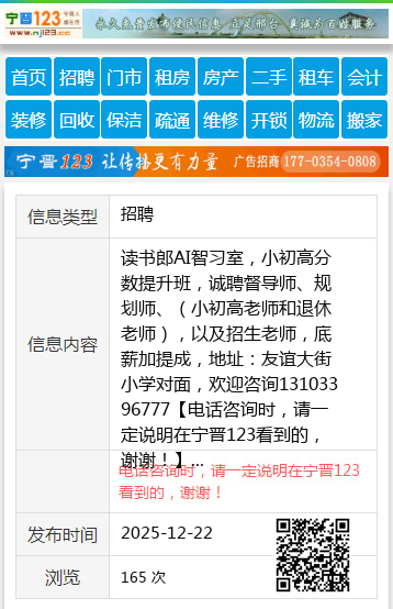读书郎AI智习室,小初高分数提升班,诚聘督导师、规划师、(小初高老师和退休老师),以及招生老师,底薪加提成,地址:友谊大街小学对面,欢迎咨询13103396777 【电话咨询时,请一定说明在宁晋123看到的,谢谢!】 |