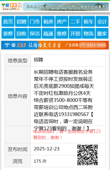 长期招聘电话客服数名业务常年不停工资按时发放转正后无责底薪2900加提成每天不定时红包激励月公休4天综合薪资3500-8000不等有带薪培训公司地点西二环附近联系电话19331980567 【电话咨询时,请一定说明在宁晋123看到的,谢谢!】 |