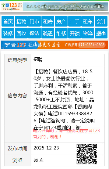 【招聘】餐饮店店员,18-50岁,女士热爱餐饮行业,手脚麻利,干活利索,善于沟通,有经验者优先,3000-5000+上不封顶,地址:晶龙街职工医院西邻【香脆肉夹馍】电话☎️15933384826 【电话咨询时,请一定说明在宁晋123看到的,谢谢!】 |