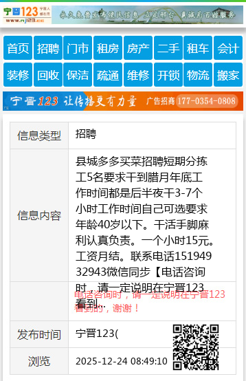县城多多买菜招聘短期分拣工5名要求干到腊月年底工作时间都是后半夜干3-7个小时工作时间自己可选要求年龄40岁以下。干活手脚麻利认真负责。一个小时15元。工资月结。联系电话15194932943微信同步 【电话咨询时,请一定说明在宁晋123看到的,谢谢!】 |