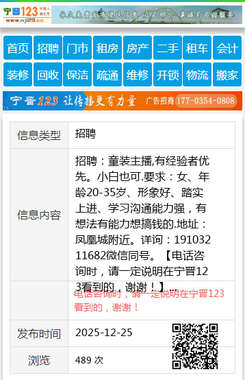 招聘:童装主播,有经验者优先。小白也可.要求:女、年龄20-35岁、形象好、踏实上进、学习沟通能力强,有想法有能力想搞钱的.地址:凤凰城附近。详询:19103211682微信同号。 【电话咨询时,请一定说明在宁晋123看到的,谢谢!】 |