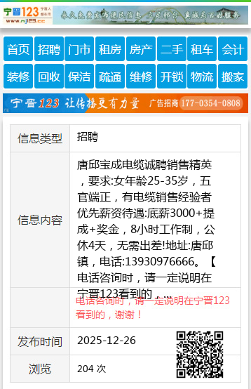| 防骗提醒: | 宁晋123(www.nj123.cc)提醒您:手工活、网络兼职、刷单,都是骗子!凡以各种名义收取费用的都是骗子!找工作是往兜里挣钱,让你往外掏钱的都是骗子!异地招聘请提高警惕,谨防诈骗! |