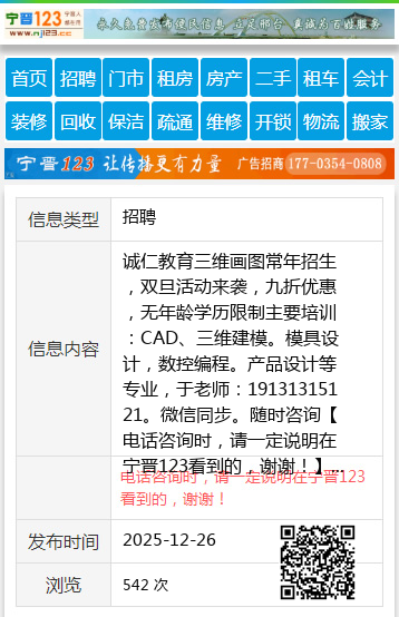 诚仁教育三维画图常年招生,双旦活动来袭,九折优惠,无年龄学历限制主要培训:CAD、三维建模。模具设计,数控编程。产品设计等专业,于老师:19131315121。微信同步。随时咨询 【电话咨询时,请一定说明在宁晋123看到的,谢谢!】 |