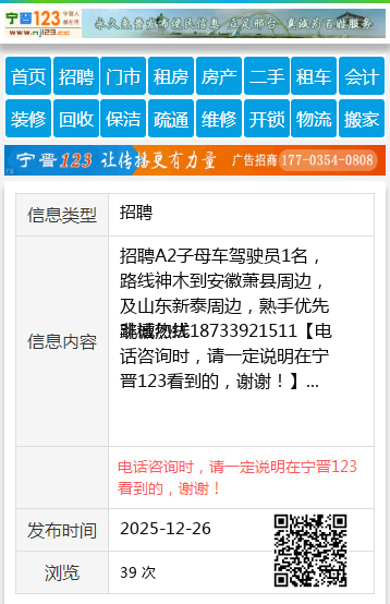 免责声明:本栏目信息由网友自行发布,宁晋123不承担任何责任!提高警惕,谨防诈骗!做推广、做信息置顶!请加宁晋123客服微信:ningjin009