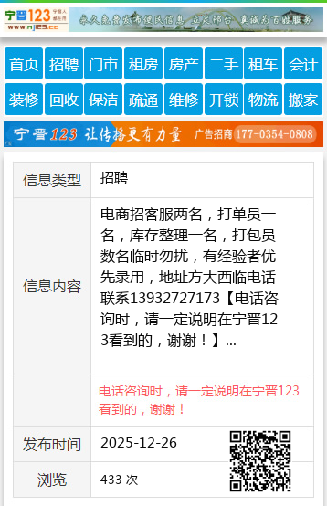 免责声明:本栏目信息由网友自行发布,宁晋123不承担任何责任!提高警惕,谨防诈骗!做推广、做信息置顶!请加宁晋123客服微信:ningjin009