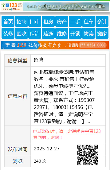 | 防骗提醒: | 宁晋123(www.nj123.cc)提醒您:手工活、网络兼职、刷单,都是骗子!凡以各种名义收取费用的都是骗子!找工作是往兜里挣钱,让你往外掏钱的都是骗子!异地招聘请提高警惕,谨防诈骗! |