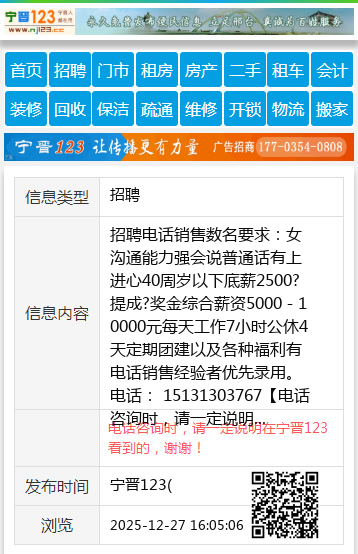 招聘电话销售数名要求:女沟通能力强会说普通话有上进心40周岁以下底薪2500?提成?奖金综合薪资5000-10000元每天工作7小时公休4天定期团建以及各种福利有电话销售经验者优先录用。电话: 15131303767 【电话咨询时,请一定说明在宁晋123看到的,谢谢!】 |