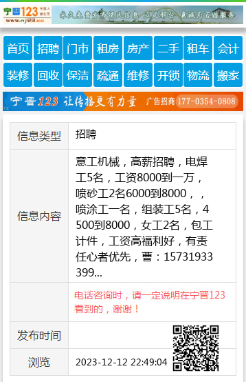 | 防骗提醒: | 宁晋123(www.nj123.cc)提醒您:手工活、网络兼职、刷单,都是骗子!凡以各种名义收取费用的都是骗子!找工作是往兜里挣钱,让你往外掏钱的都是骗子!异地招聘请提高警惕,谨防诈骗! |