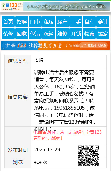诚聘电话售后客服@不需要销售,每天8小时制,每月8天公休,18到35岁,业务简单易上手,玻璃心勿扰!有意向抓紧时间联系我啦!联系电话:19061895105(微信同号) 【电话咨询时,请一定说明在宁晋123看到的,谢谢!】 |