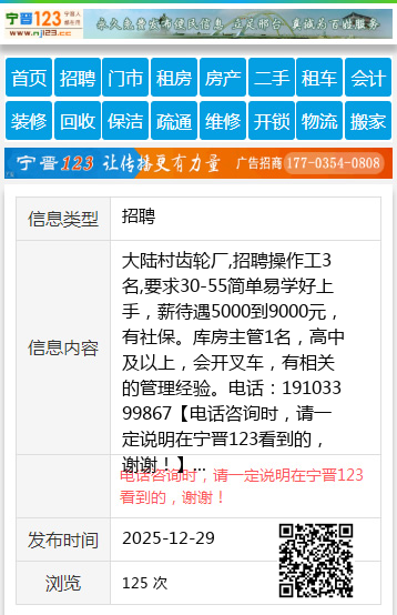 大陆村齿轮厂,招聘操作工3名,要求30-55简单易学好上手,薪待遇5000到9000元,有社保。库房主管1名,高中及以上,会开叉车,有相关的管理经验。电话:19103399867 【电话咨询时,请一定说明在宁晋123看到的,谢谢!】 |