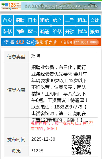 招聘业务员,有日化,同行业务经验者优先要求:会开车年龄要求30岁以上45岁以下不怕吃苦,认真负责,团队精神!工时间:早八点到下午6点。工资面议!待遇厚!联系电话:18832997779 【电话咨询时,请一定说明在宁晋123看到的,谢谢!】 |