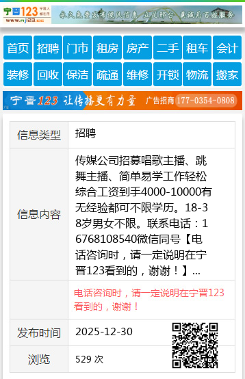 传媒公司招募唱歌主播、跳舞主播、简单易学工作轻松综合工资到手4000-10000有无经验都可不限学历。18-38岁男女不限。联系电话:16768108540微信同号 【电话咨询时,请一定说明在宁晋123看到的,谢谢!】 |