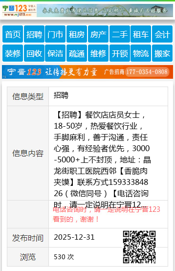 | 防骗提醒: | 宁晋123(www.nj123.cc)提醒您:手工活、网络兼职、刷单,都是骗子!凡以各种名义收取费用的都是骗子!找工作是往兜里挣钱,让你往外掏钱的都是骗子!异地招聘请提高警惕,谨防诈骗! |