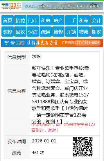新年快乐!专业歌手承接:需要驻唱助兴的饭店、酒吧、婚宴、订婚宴、宝宝宴、或各种派对聚会、或门店开业等驻唱业务、联系微电15175911888我团队有专业的女歌手和男歌手 【电话咨询时,请一定说明在宁晋123看到的,谢谢!】 |