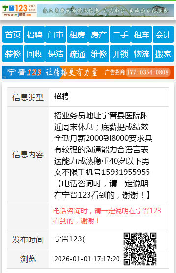 招业务员地址宁晋县医院附近周末休息;底薪提成绩效全勤月薪2000到8000要求具有较强的沟通能力合语言表达能力成熟稳重40岁以下男女不限手机号15931955955 【电话咨询时,请一定说明在宁晋123看到的,谢谢!】 |