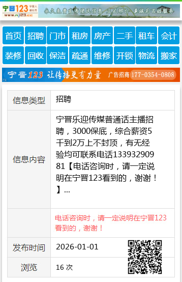 宁晋乐迎传媒普通话主播招聘,3000保底,综合薪资5千到2万上不封顶,有无经验均可联系电话13393290981
