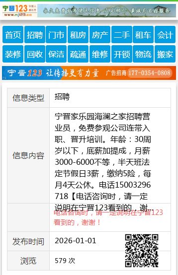 宁晋家乐园海澜之家招聘营业员,免费参观公司连带入职、晋升培训。年龄:30周岁以下,底薪加提成,月薪3000-6000不等,半天班法定节假日3薪,缴纳5险,每月4天公休。电话15003296718 【电话咨询时,请一定说明在宁晋123看到的,谢谢!】 |