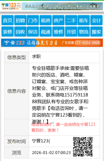 专业驻唱歌手承接:需要驻唱助兴的饭店、酒吧、婚宴、订婚宴、宝宝宴、或各种派对聚会、或门店开业等驻唱业务、联系微电15175911888我团队有专业的女歌手和男歌手 【电话咨询时,请一定说明在宁晋123看到的,谢谢!】 |