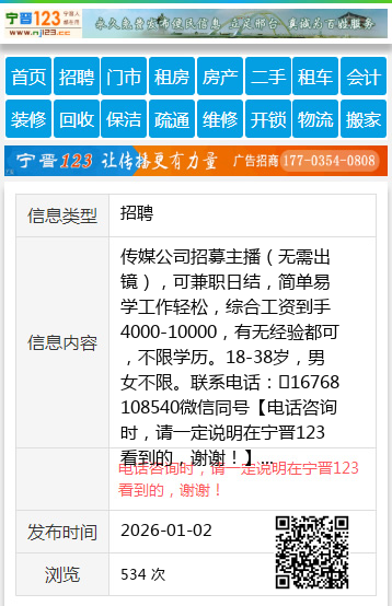 传媒公司招募主播(无需出镜),可兼职日结,简单易学工作轻松,综合工资到手4000-10000,有无经验都可,不限学历。18-38岁,男女不限。联系电话:16768108540微信同号 【电话咨询时,请一定说明在宁晋123看到的,谢谢!】 |