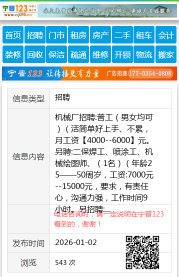 工作地址:唐邱乡,联系电话:15612989507 【电话咨询时,请一定说明在宁晋123看到的,谢谢!】 |