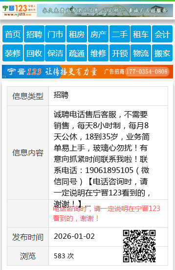 诚聘电话售后客服,不需要销售,每天8小时制,每月8天公休,18到35岁,业务简单易上手,玻璃心勿扰!有意向抓紧时间联系我啦!联系电话:19061895105(微信同号) 【电话咨询时,请一定说明在宁晋123看到的,谢谢!】 |