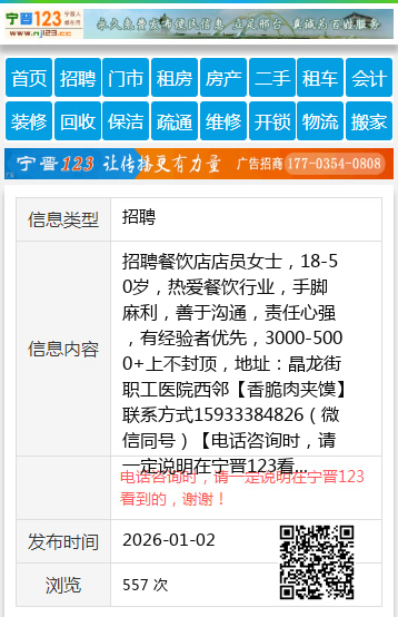 | 防骗提醒: | 宁晋123(www.nj123.cc)提醒您:手工活、网络兼职、刷单,都是骗子!凡以各种名义收取费用的都是骗子!找工作是往兜里挣钱,让你往外掏钱的都是骗子!异地招聘请提高警惕,谨防诈骗! |