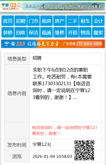 求职下午6点到12点的兼职工作。吃苦耐劳,有c本需要联系17303302131