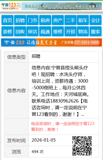 宁晋县捏头熊头疗吧!现招聘:水洗头疗师,培训上岗,资薪待遇:3000-5000倒班上,每月公休四天。工作地点:天河城底商。联系电话18830962626 【电话咨询时,请一定说明在宁晋123看到的,谢谢!】 |