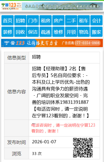 | 防骗提醒: | 宁晋123(www.nj123.cc)提醒您:手工活、网络兼职、刷单,都是骗子!凡以各种名义收取费用的都是骗子!找工作是往兜里挣钱,让你往外掏钱的都是骗子!异地招聘请提高警惕,谨防诈骗! |