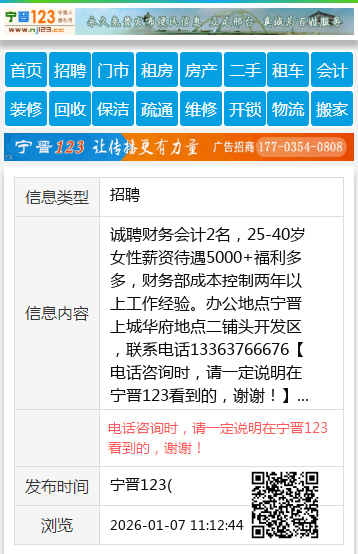诚聘财务会计2名,25-40岁女性薪资待遇5000+福利多多,财务部成本控制两年以上工作经验。办公地点宁晋上城华府地点二铺头开发区,联系电话13363766676 【电话咨询时,请一定说明在宁晋123看到的,谢谢!】 |