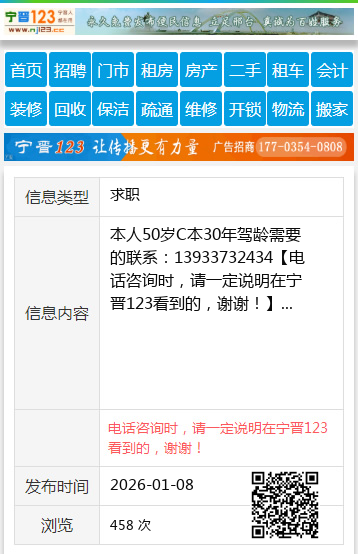 免责声明:本栏目信息由网友自行发布,宁晋123不承担任何责任!提高警惕,谨防诈骗!做推广、做信息置顶!请加宁晋123客服微信:ningjin009