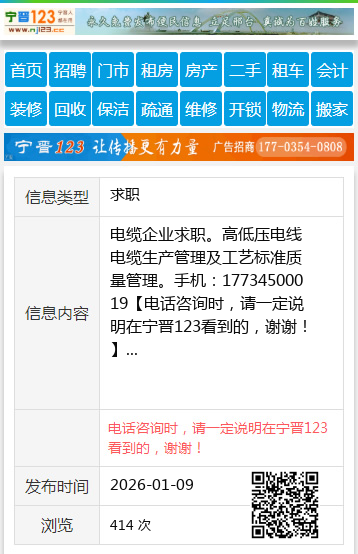 免责声明:本栏目信息由网友自行发布,宁晋123不承担任何责任!提高警惕,谨防诈骗!做推广、做信息置顶!请加宁晋123客服微信:ningjin009