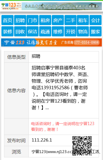 宁晋县福泰403名师课堂招聘初中数学、英语、物理、化学优秀老师,咨询电话13931952586(曹老师)。 【电话咨询时,请一定说明在宁晋123看到的,谢谢!】 |