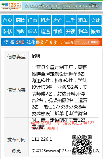 宁晋县全屋定制工厂,高薪诚聘全屋定制设计拆单3名海迅软件,柜柜软件,学徒设计师3名,业务员2名,安装师傅2名,封边开料师傅各2名,视频拍摄2名,运营2名,电话17733957888