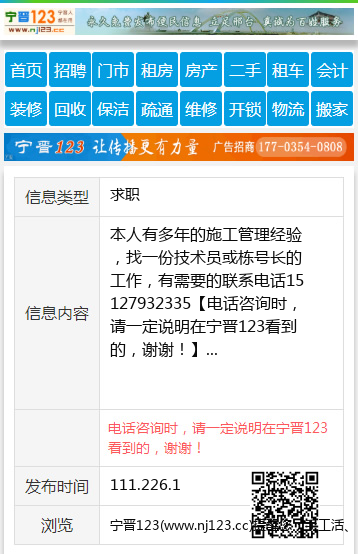 免责声明:本栏目信息由网友自行发布,宁晋123不承担任何责任!提高警惕,谨防诈骗!做推广、做信息置顶!请加宁晋123客服微信:ningjin009
