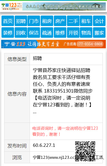 宁晋县苏家庄快递驿站招聘数名员工要求干活仔细有责任心、负责人的有意者速度联系 18331951301微信同步 【电话咨询时,请一定说明在宁晋123看到的,谢谢!】 |